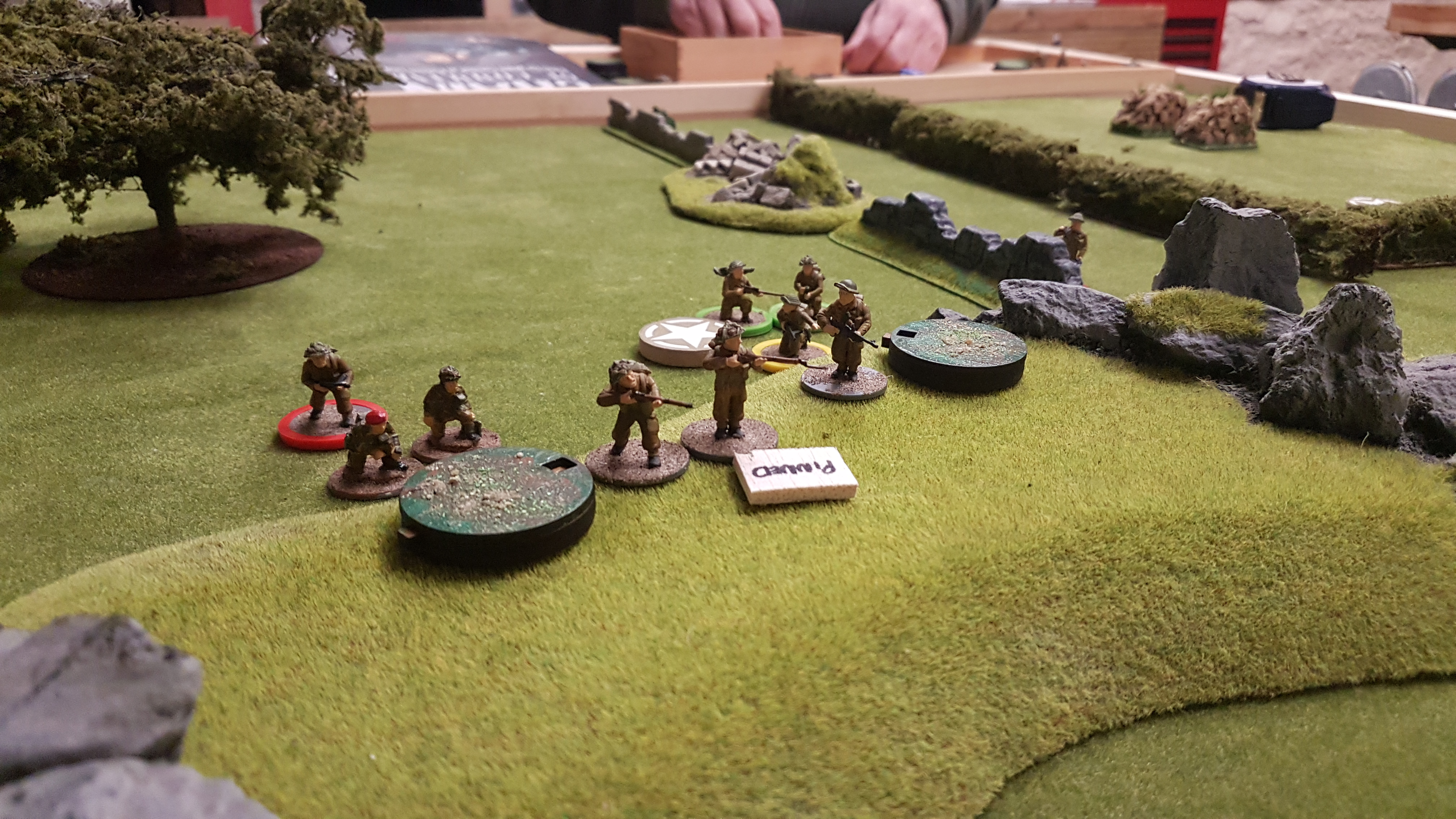 The Germans managed to deploy two infantry sections and two SL’s with both sections going on to Over-watch.