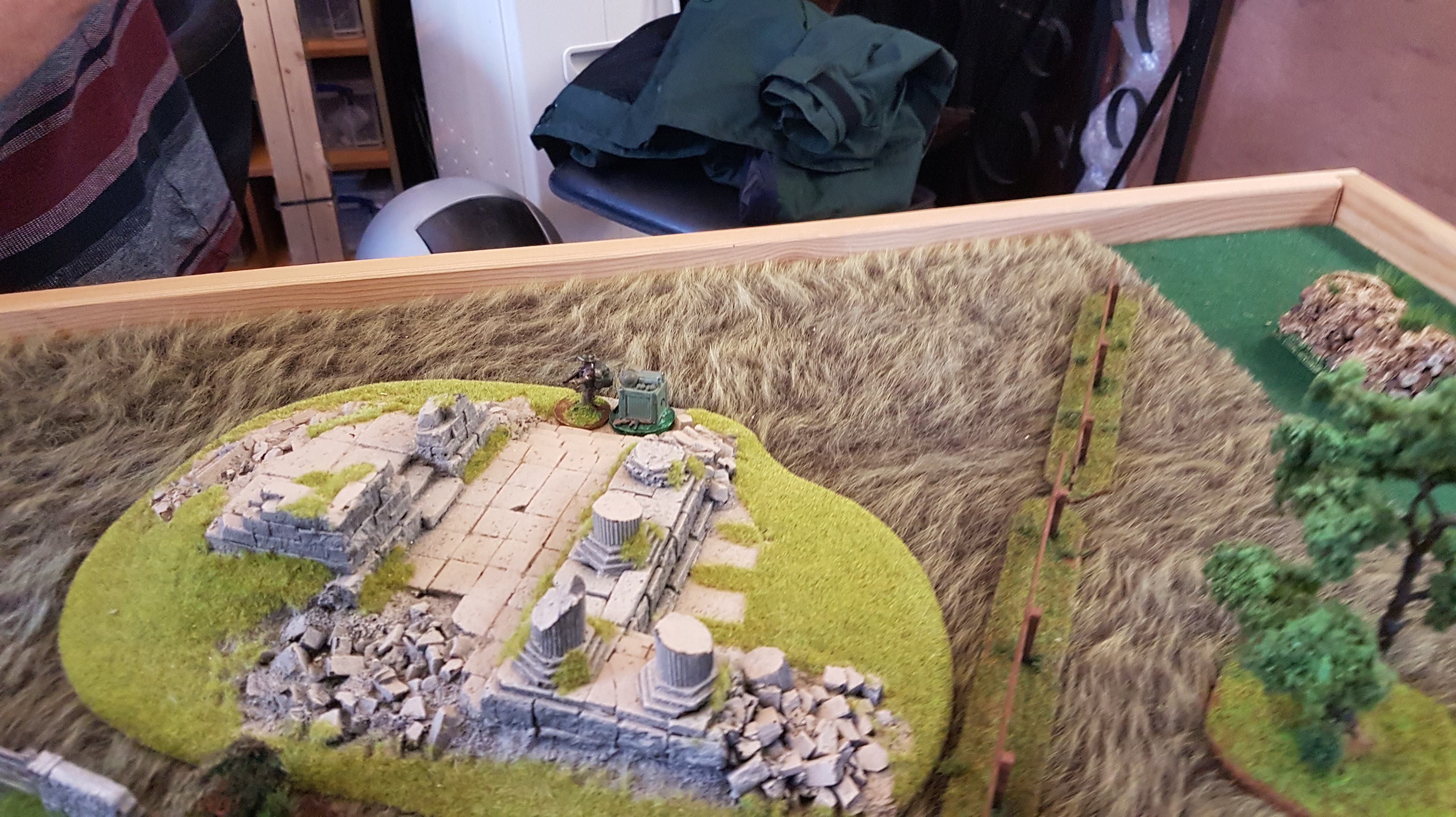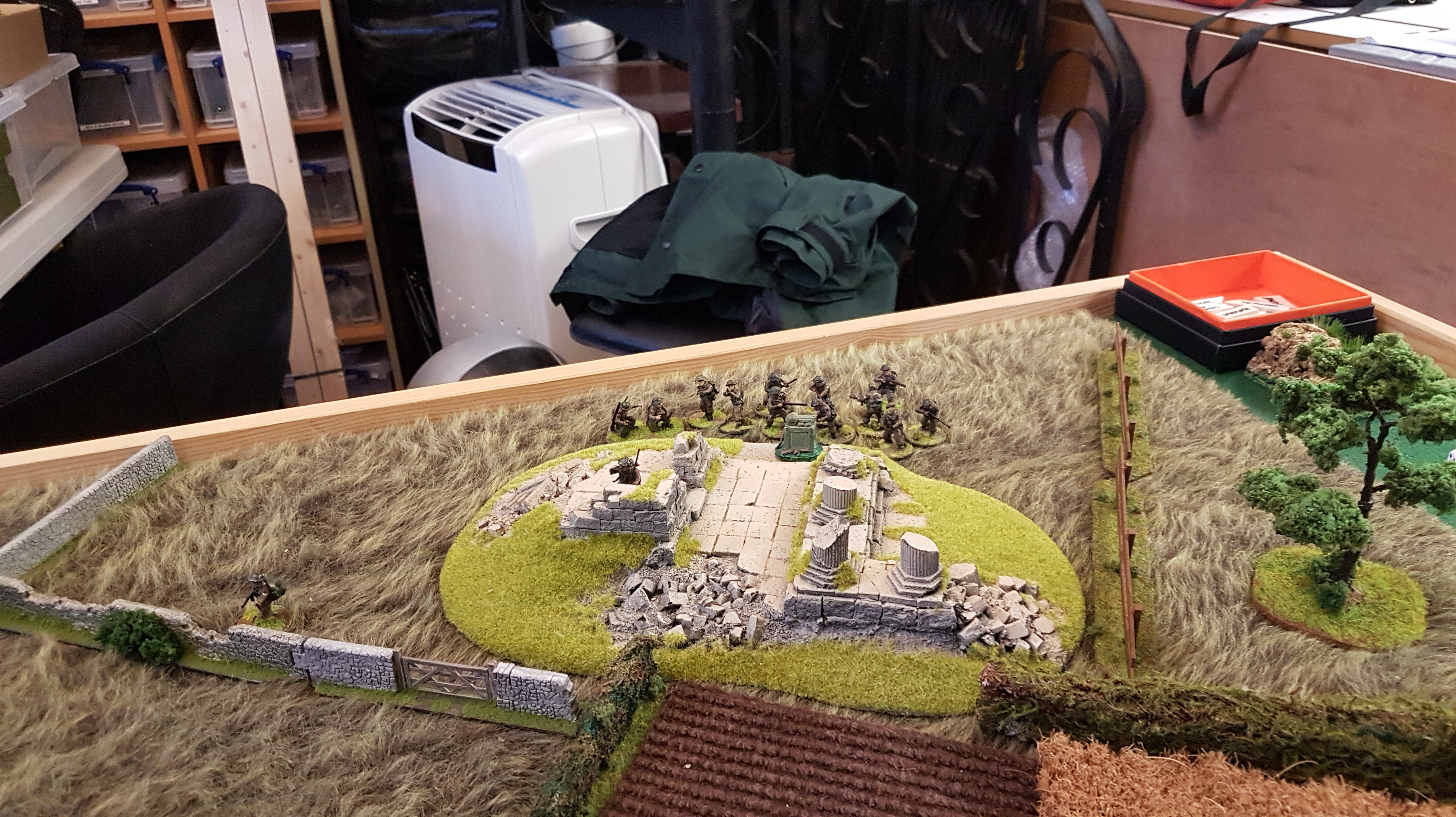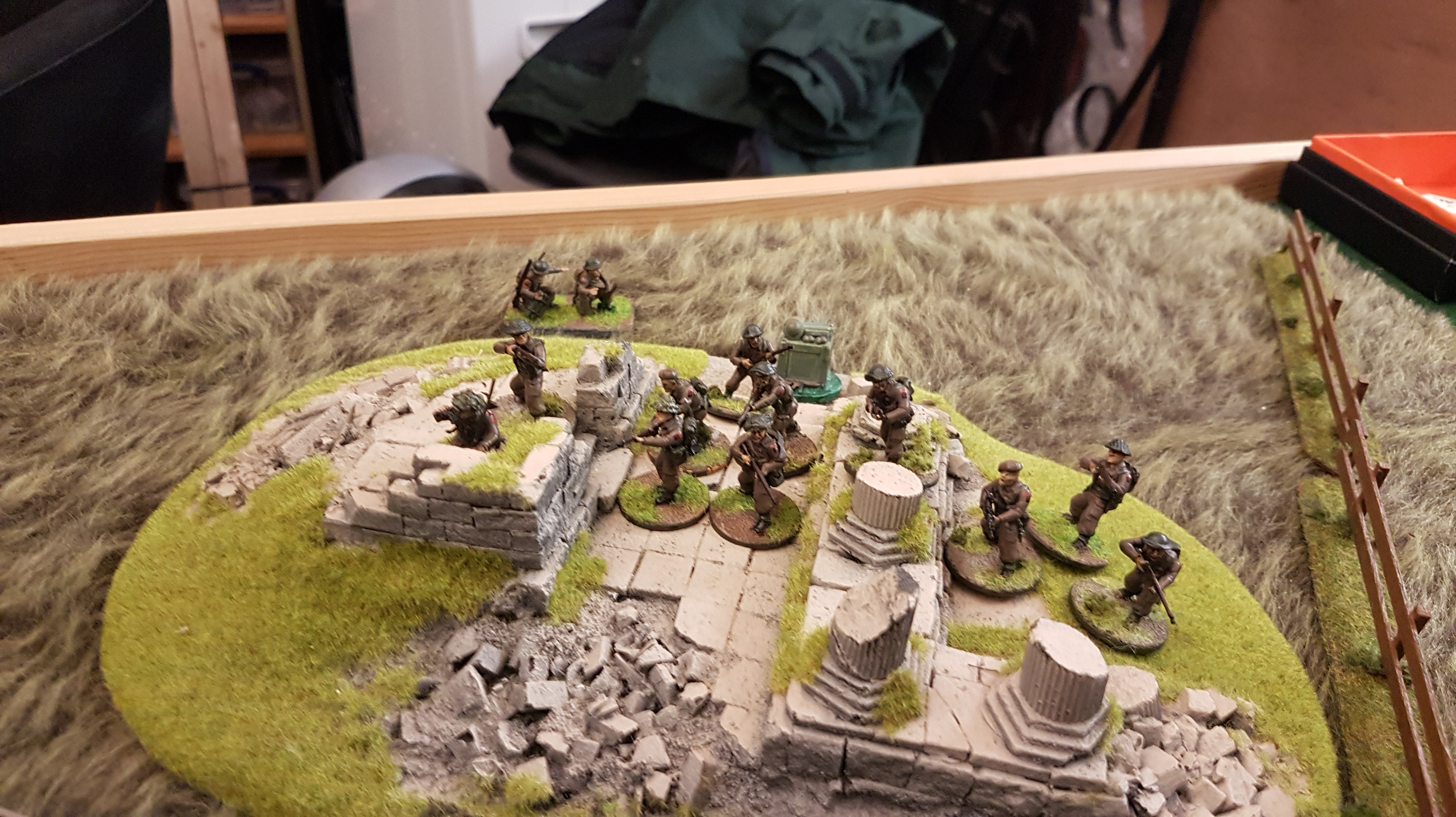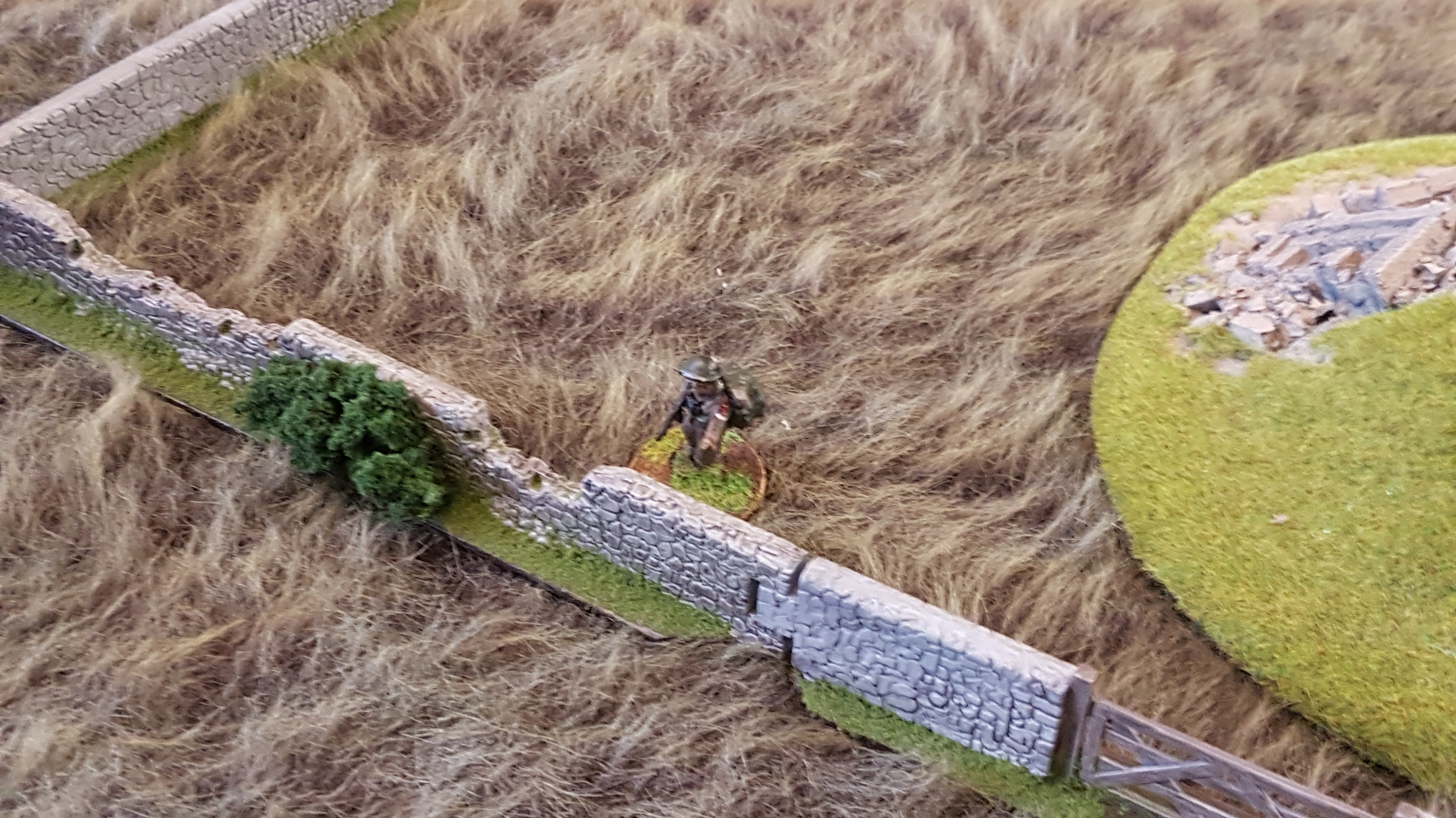The British managed to contact their off table artillery support and bring down fire support on the Germans but unfortunately for the British, this had little against the Germans who used a full Chain of Command die to end the turn, and hence, the barrage!