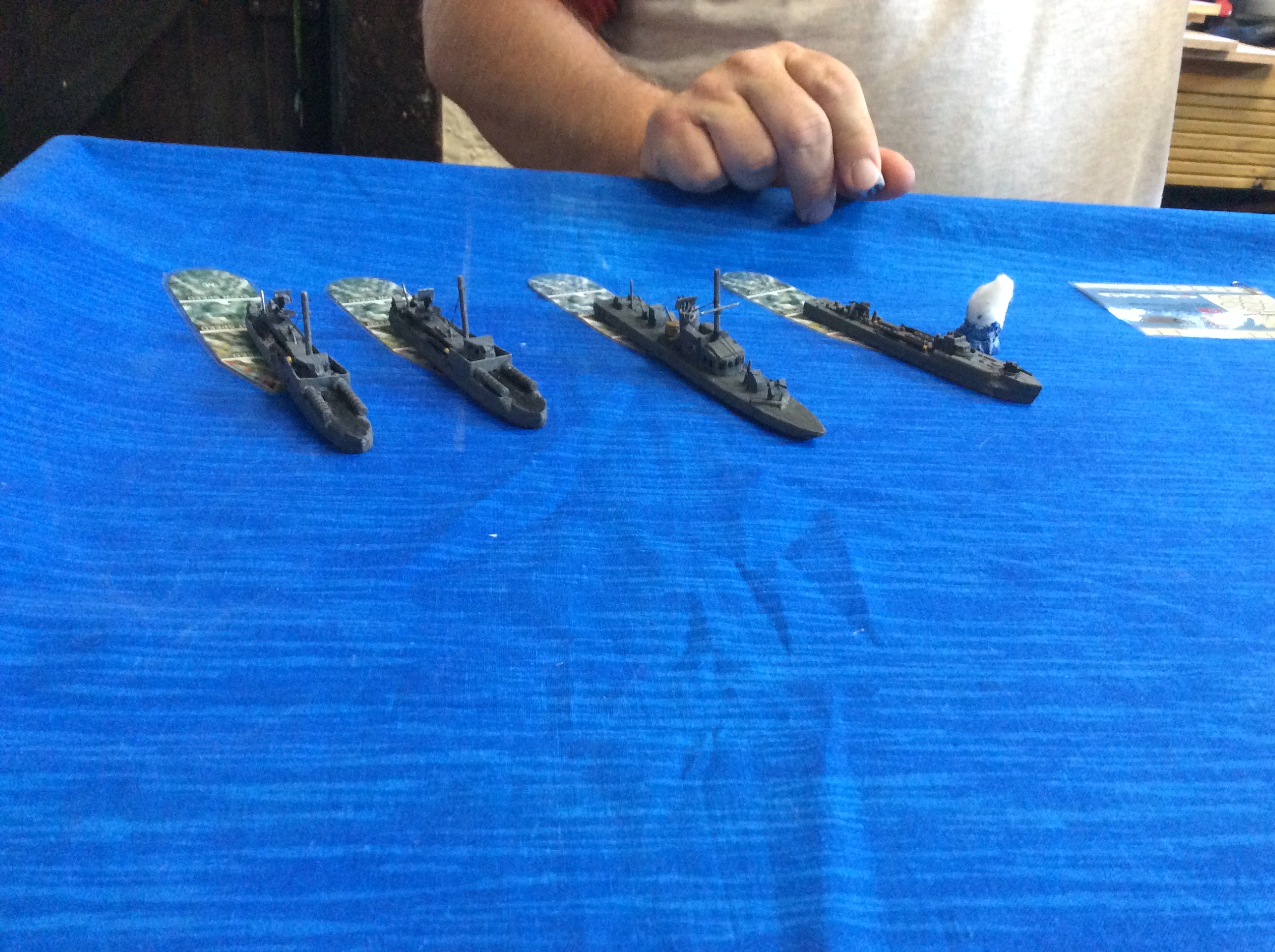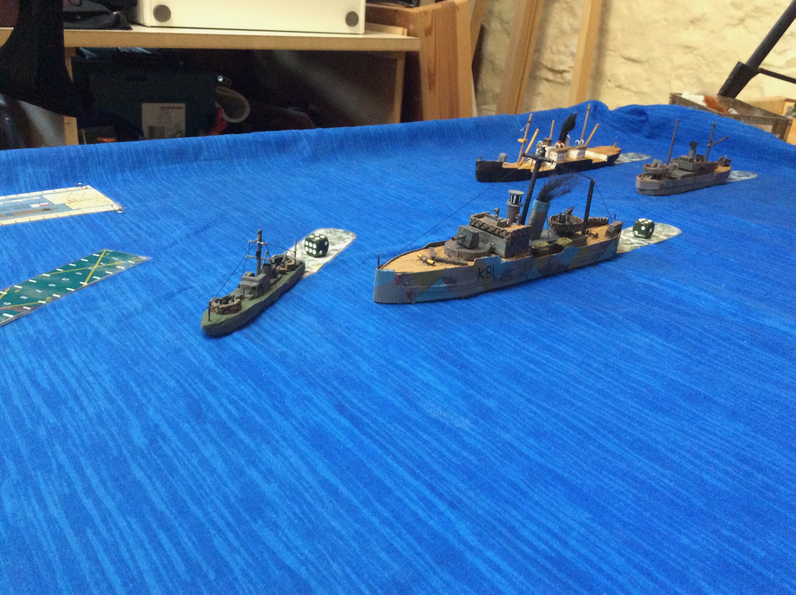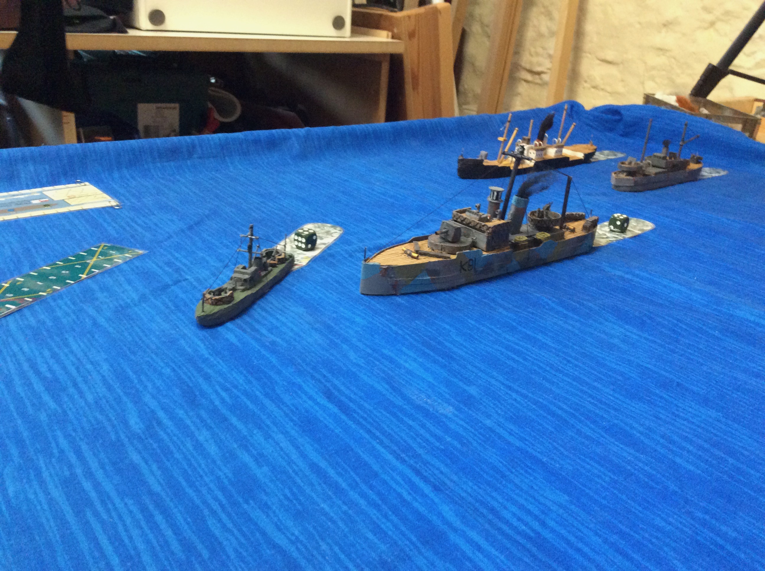 Rory brought round his copy of Cruel Seas by Warlord Games and put on a couple of games of 1/300th scale naval action.