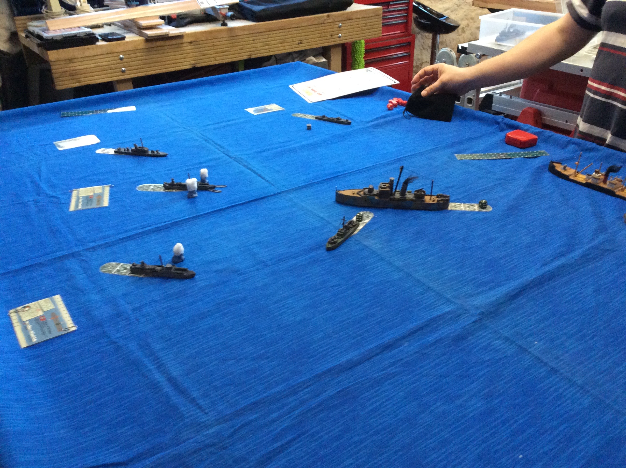 The majority of the ship’s used were scratch built by Rory and looked impressive on the table top. Both Rory and Dave enjoyed the two games they managed to fit in and great fun was had trying to avoid each other’s torpedoes!